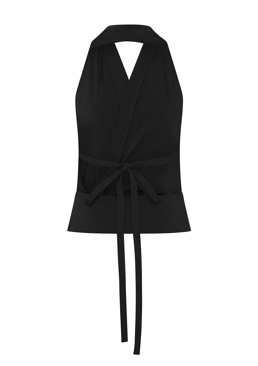 ST AGNI HALTER WRAP TOP BLACKSold out