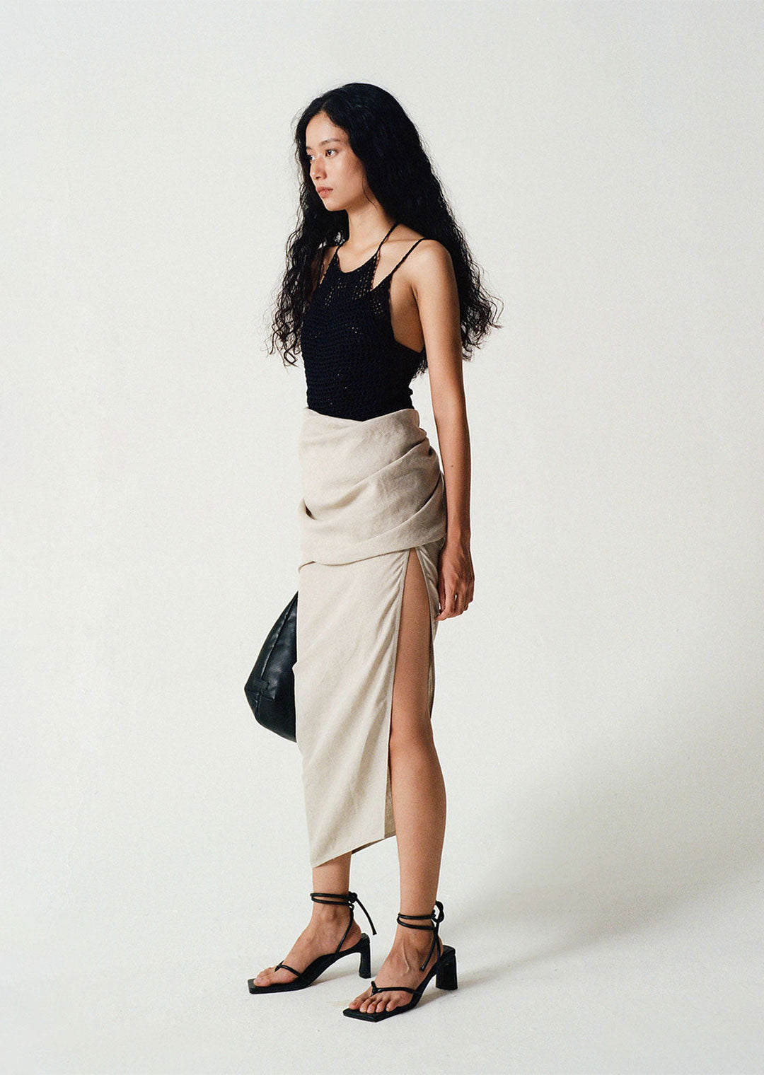 SUBTLE LE NGUYEN LINEN GATHERED MIDI SKIRTSale